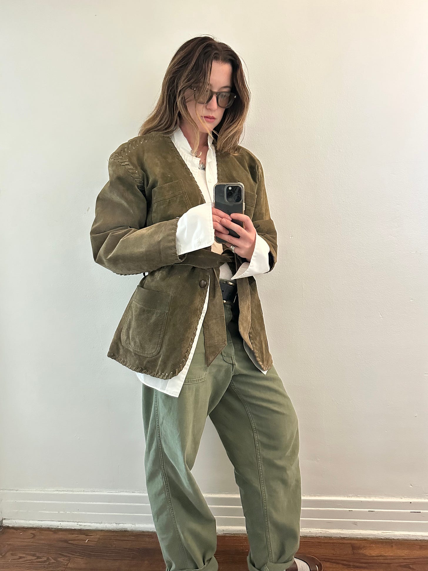 I’ve been hunting for this very specific vintage L.L. Bean shearling fringe jacket for a while—with no luck. Last month, I found one hanging off the side mirror of a truck at the Rose Bowl, in perfect condition. I bought it on the spot. It’s definitely coming with me somewhere cold this fall.