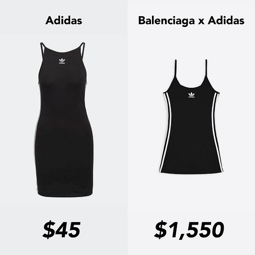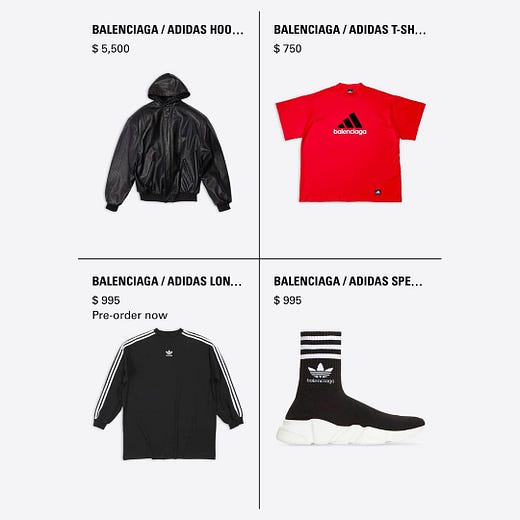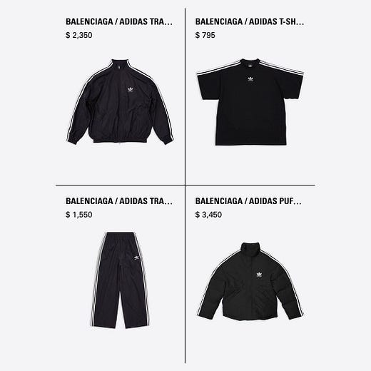 If there’s ever a signal we’ve lost the plot it’s Balenciaga remixing a b a s i c Adidas tee shirt (THAT I USED TO WEAR) by slapping their logo on it and saying it’s worth $750. And what’s worse is there are people who will pay for it. I’m a huge fan of brands with different POVs collaborating, but this is truly the worst of it.