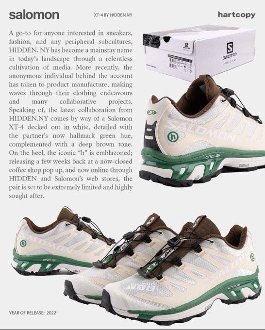 Then GQ names the XT-6 the sneaker of the year, in the early wave of Gorpcore. The shoe had only been around for 5-6 years by this point. Not bad for a ski company.