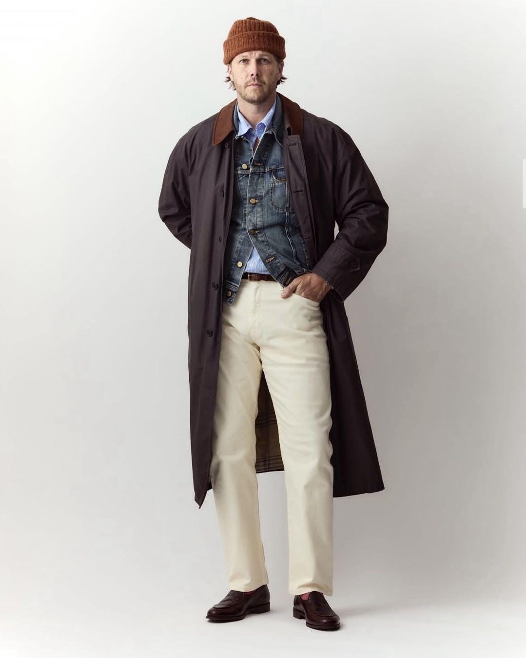 Always a good move to size up a bit on outerwear to allow for even more layering potential. It gives you that ability to make a suit and tie more approachable with a fresh barn (shown below) or donkey coat for example.
