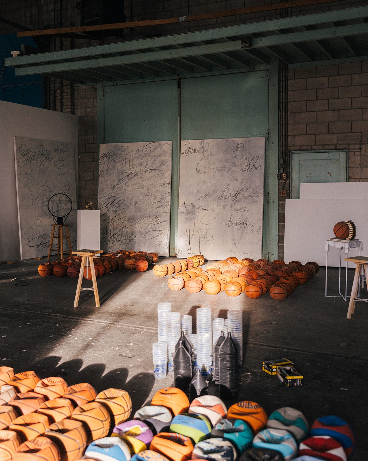 When you’re working with materials like acrylic on canvas (or used basketballs and plastic) how do you decide your approach for each piece?