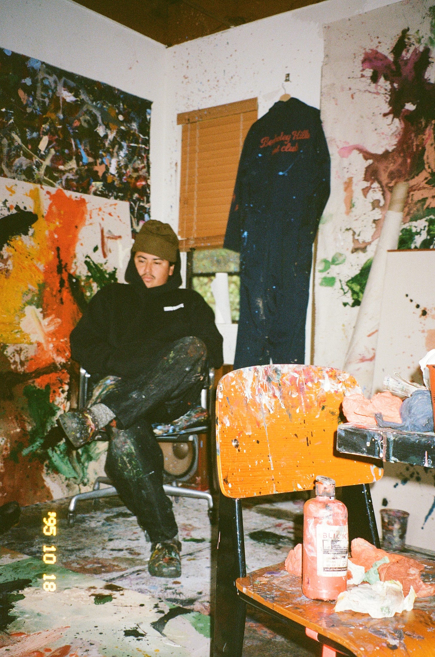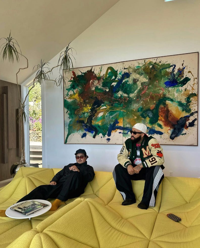 Maybe you’ve seen his artwork floating around the World Wide Web or spotted him posting up with the Larry June on his Pierre Paulin dune sofa in front of a massive double-panel piece he commissioned JB to paint.