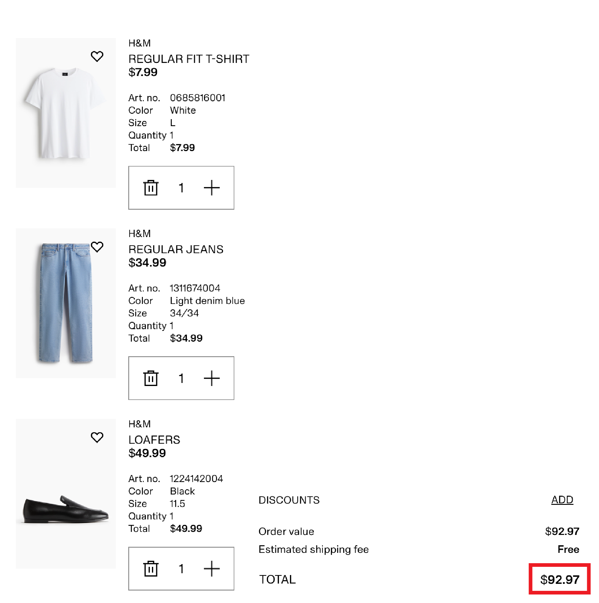 At H&M, $93.