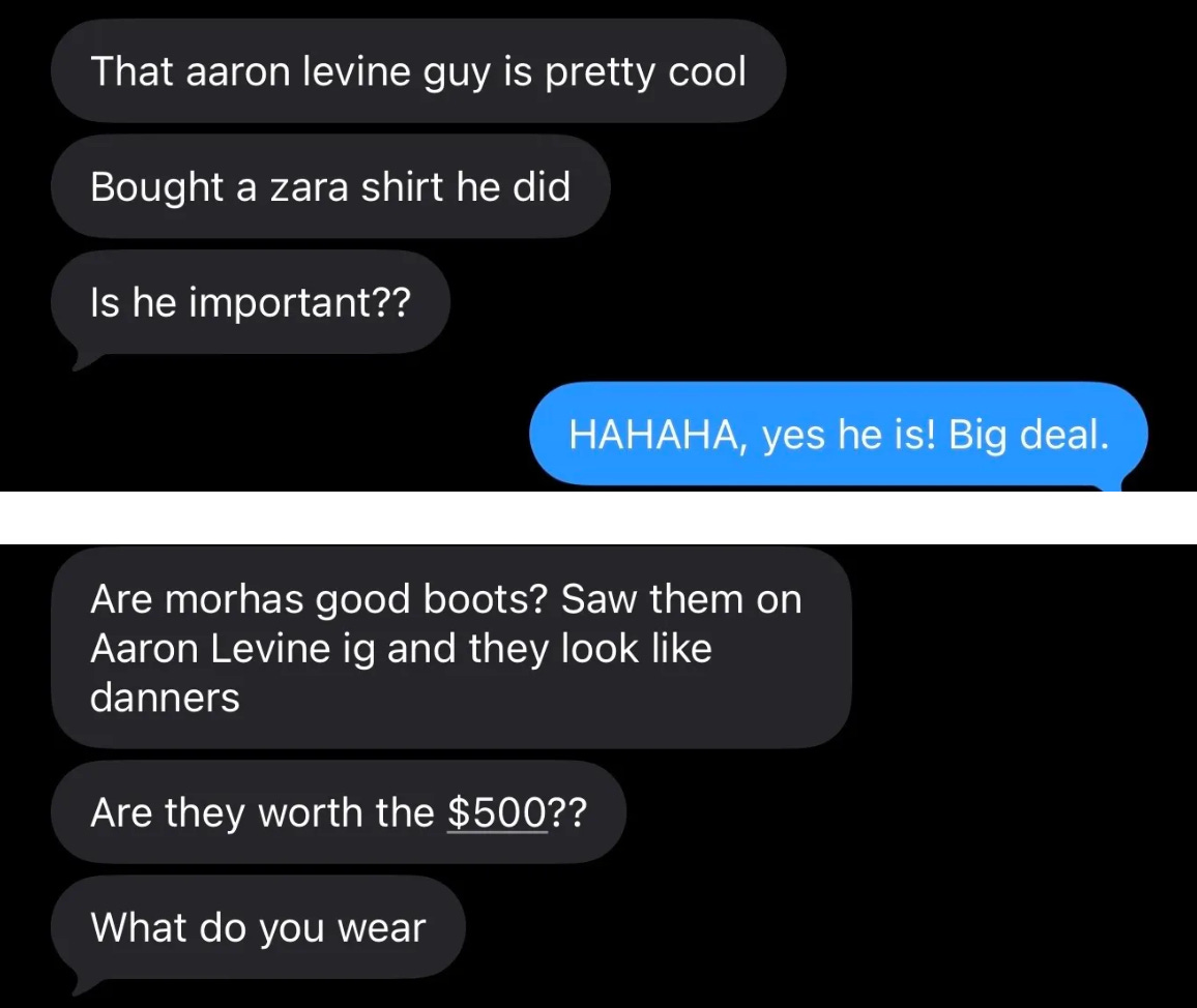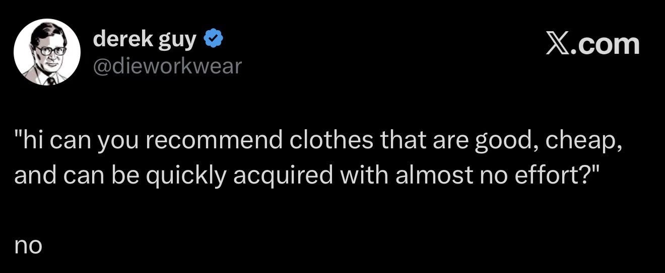 I had to pressure-test this, so I texted three of my [non-insider] friends to ask what they consider when buying clothing.