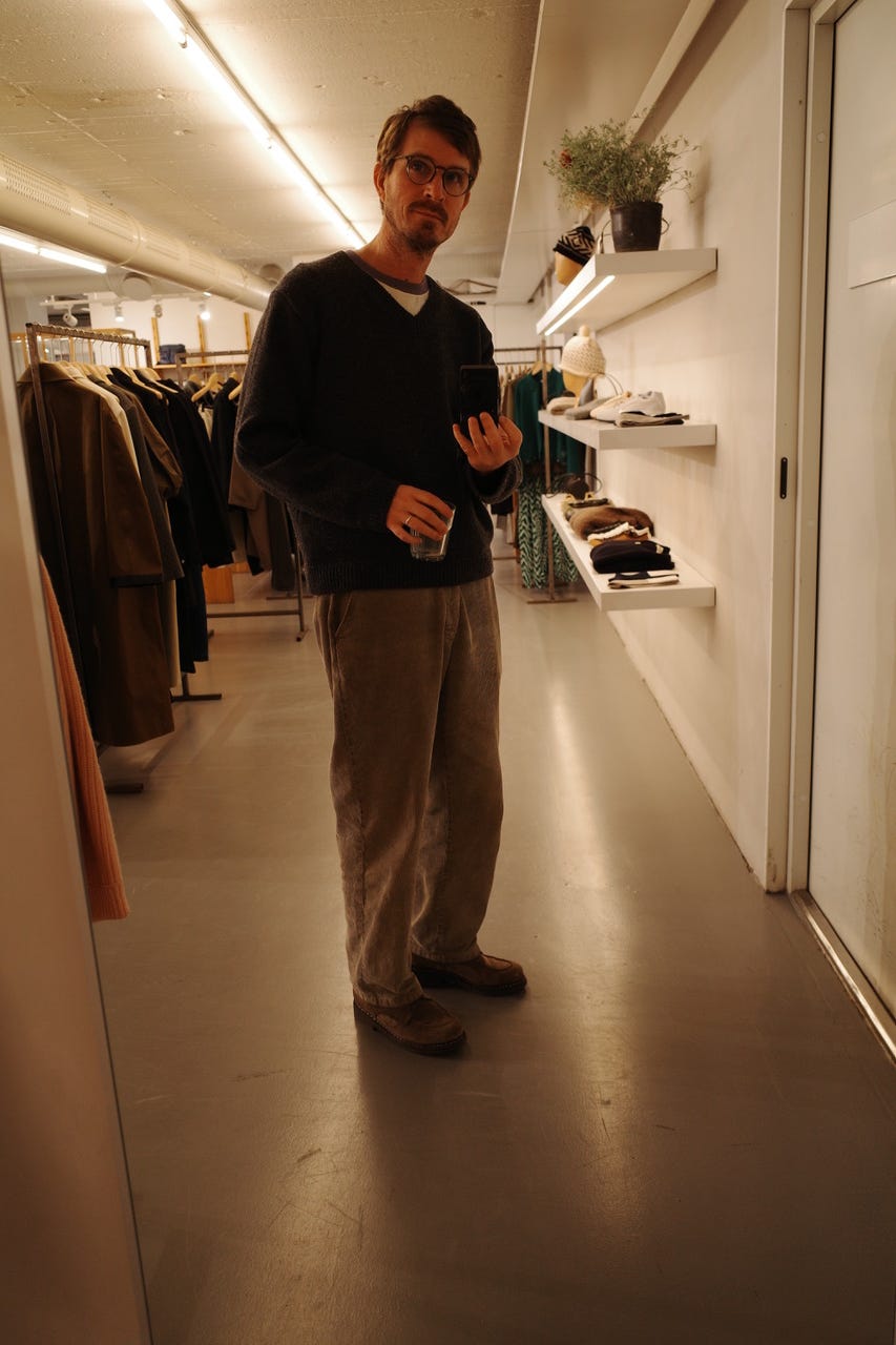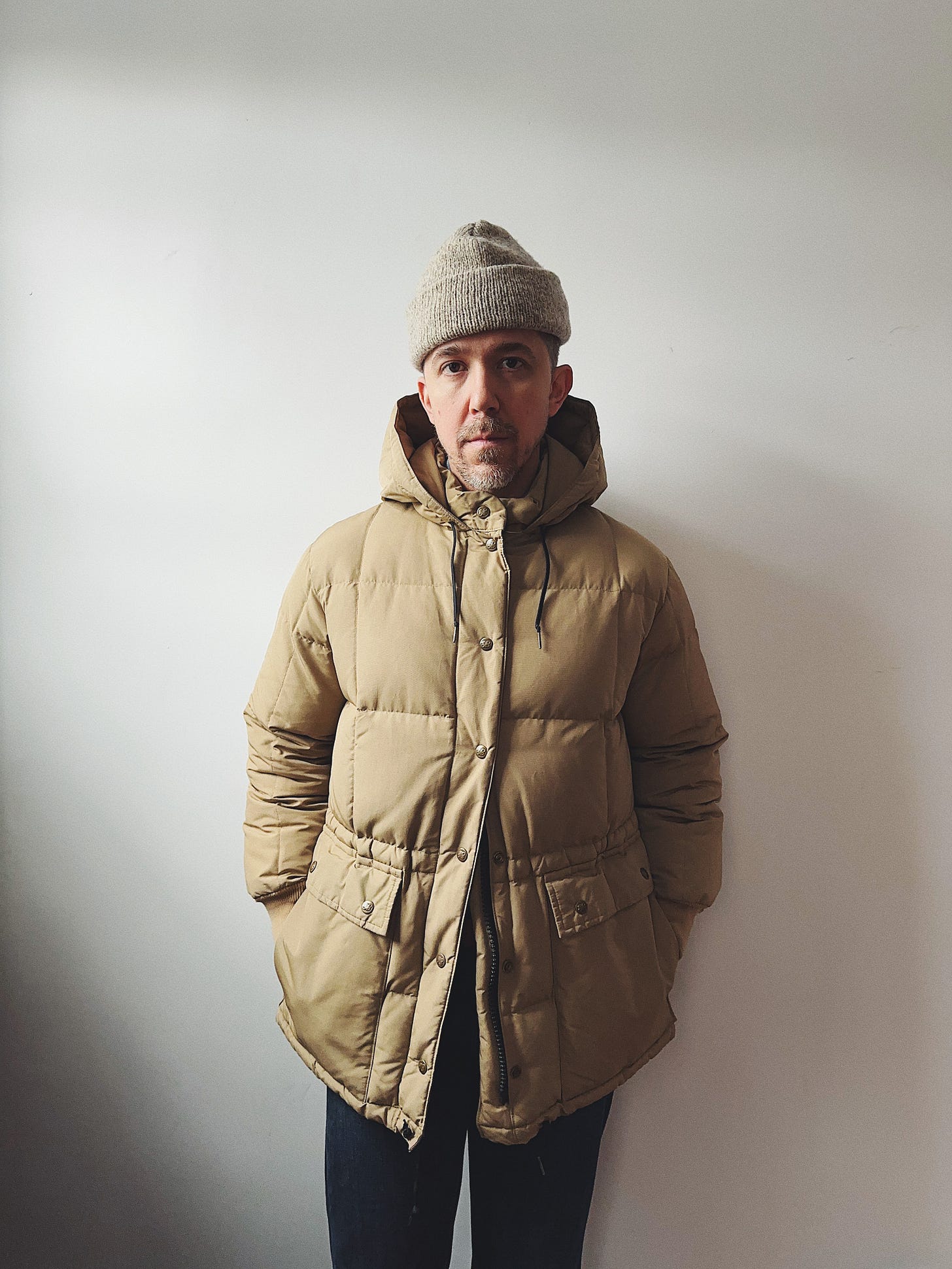 Recently, I picked up a Mountain Hardwear down jacket that I love—it’s unassuming but warm and works well with a variety of fits. For milder days, I’ll reach for my vintage Brown’s Beach or a 1950s-era L.L.Bean field coat that I miraculously found in NOS condition.