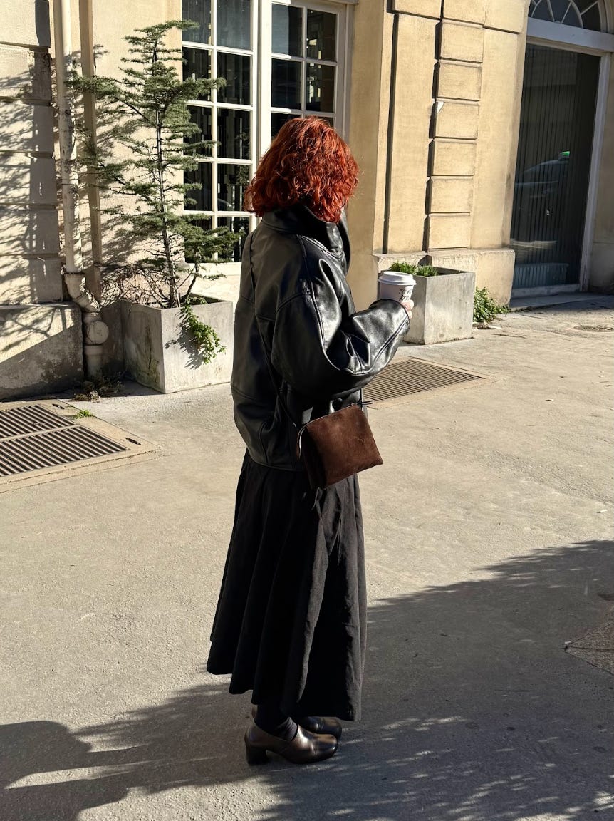 Fun fact: it’s at the National Museum in Stockholm. I also wear my green, water-resistant, pleated Issey Miyake cape year-round, layering a puffer underneath in winter. Can’t choose just one…