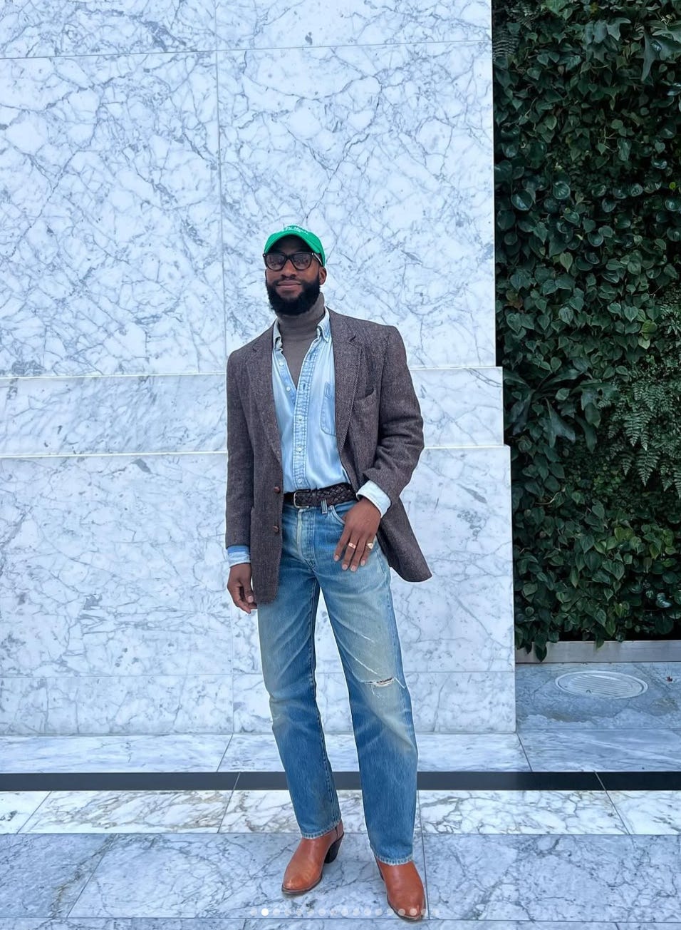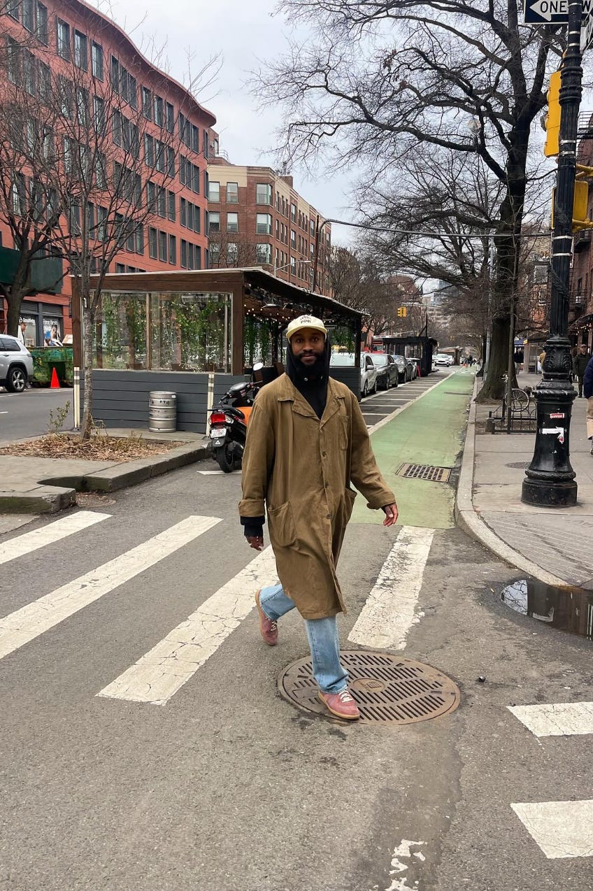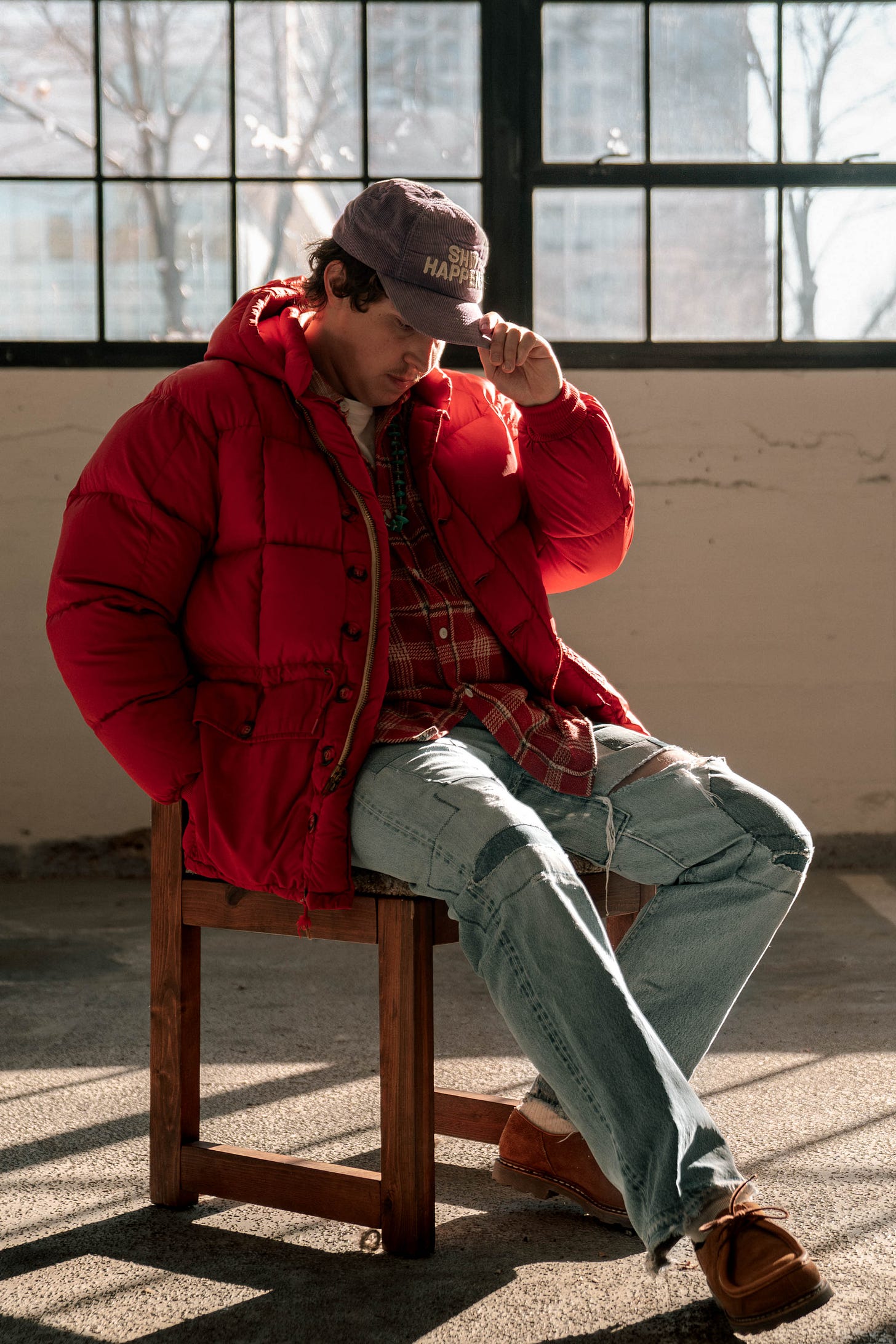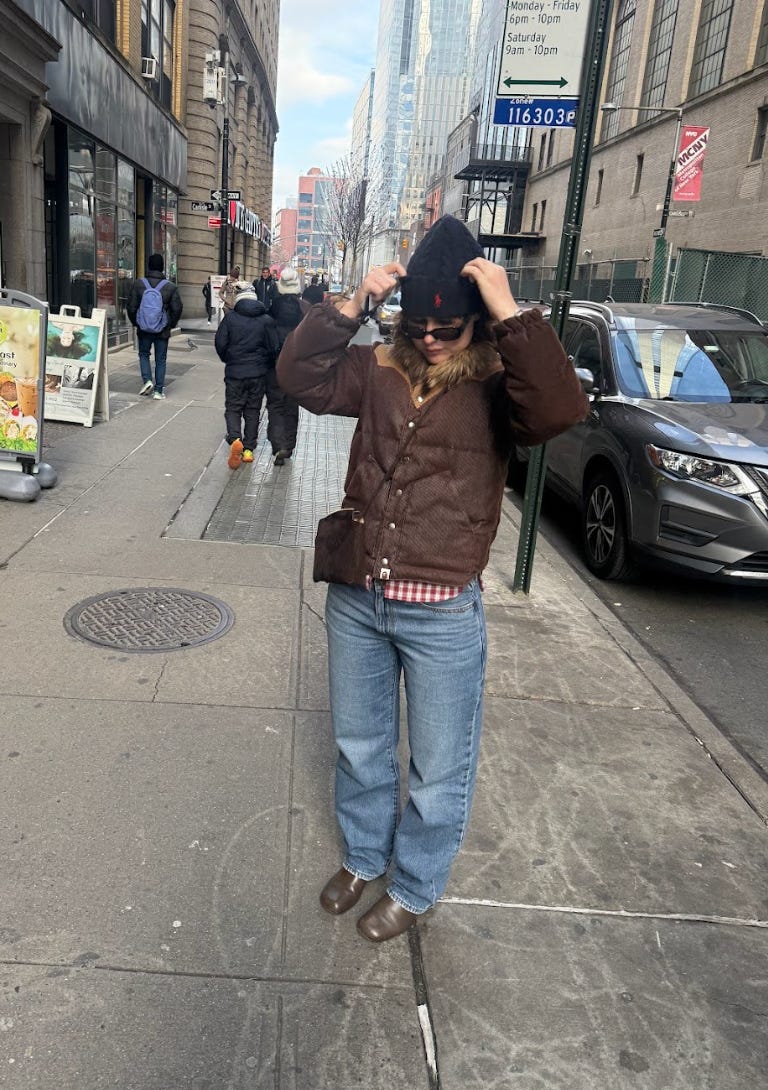 My go-to cold-weather look is usually some sort of puffer—typically my Eddie Bauer Kara Koram—paired with a woven shirt, a pair of ’90s Levi’s, and my Blundstones to brave the salt?