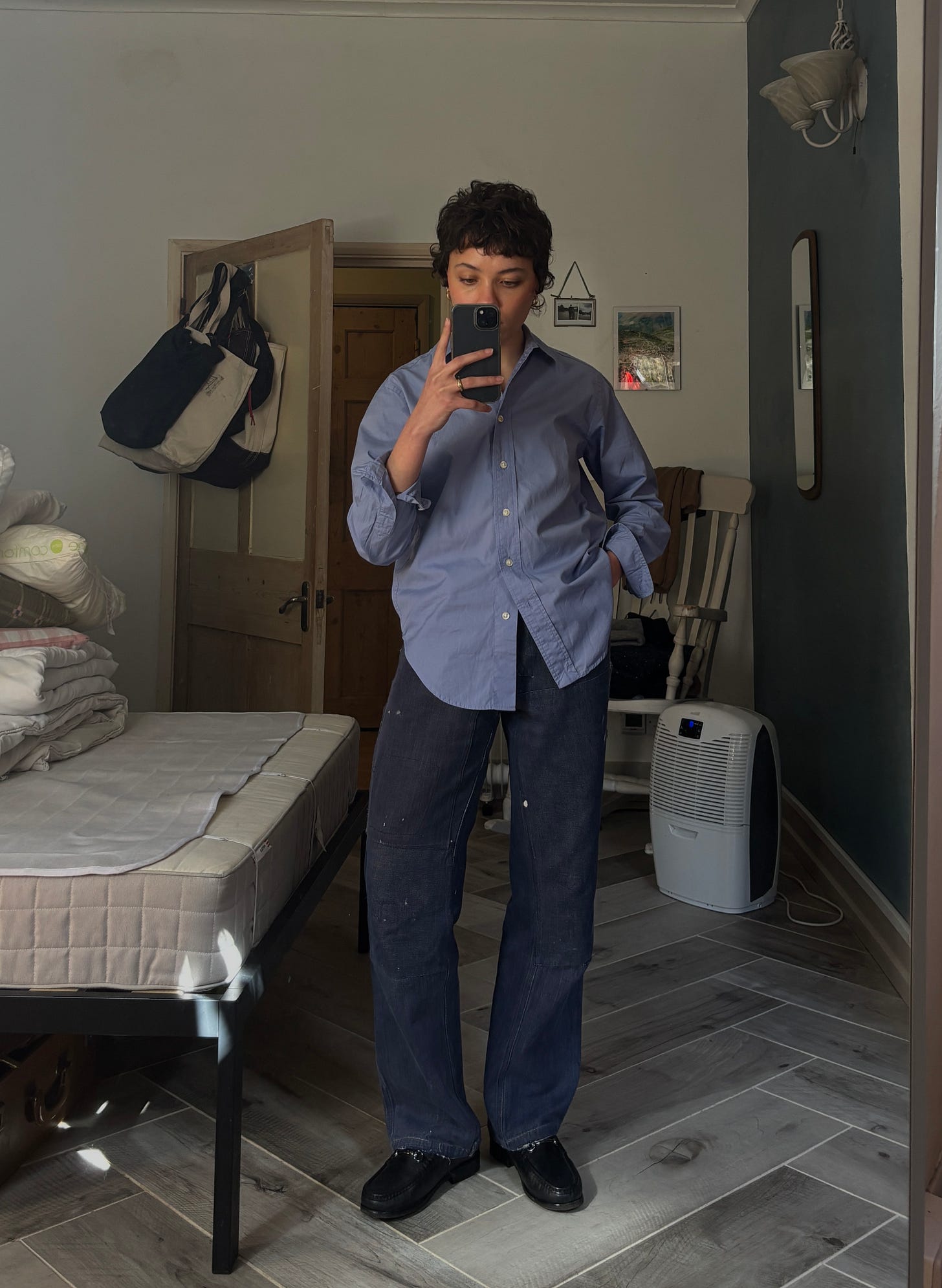 Easy and breezy! My go-to is a loose-fitting button-down or button-up shirt with a pair of French workwear trousers or a skirt when it starts to warm up.