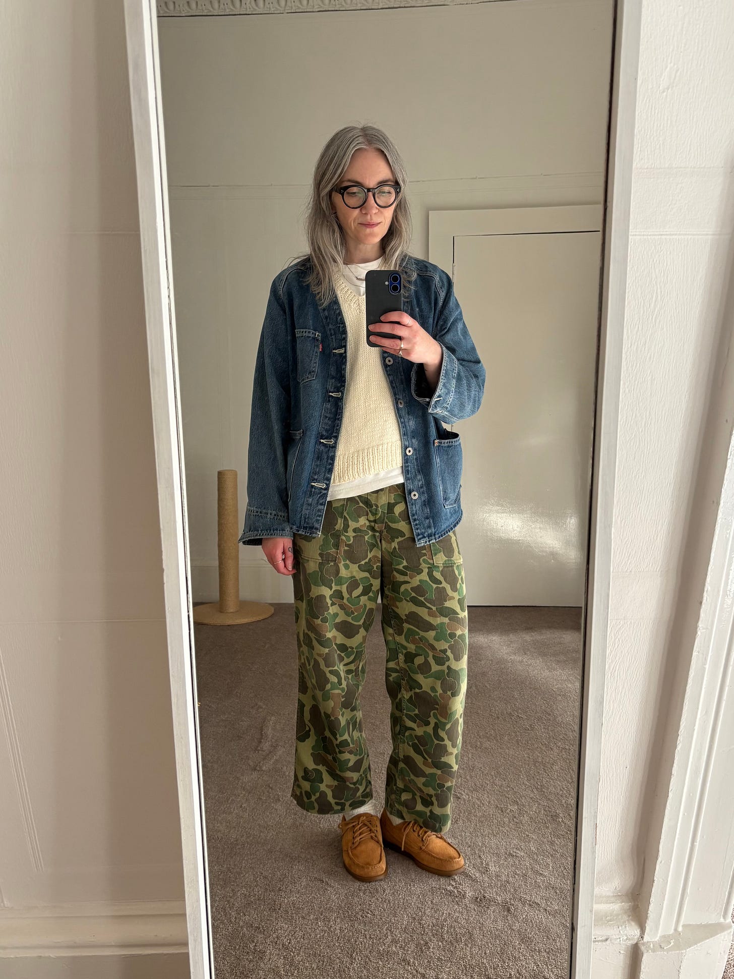 Definitely my frog skin fatigues. They’re very lightweight, so they don’t get any wear over winter, but they’re perfect when it starts to warm up. They’re vintage; I’ve had them for years.